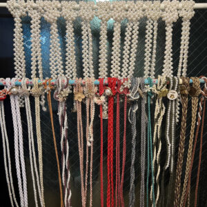 特徴を出すには帯留めも重要。花や鳥などをモチーフにした帯留めを付けると、よりアンティークな仕上がりになります。