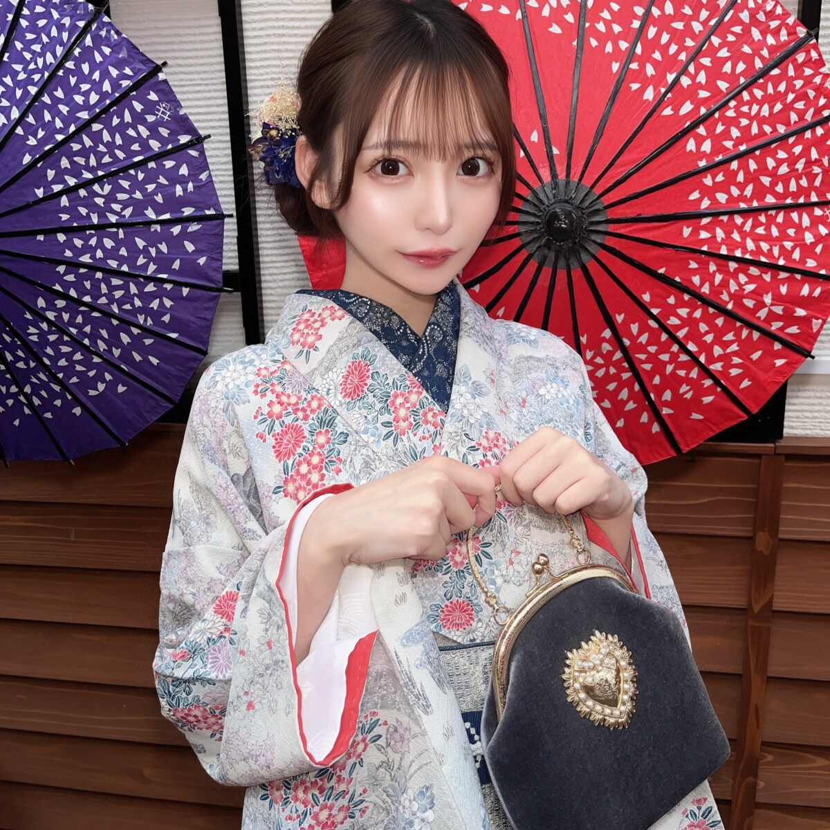 着物柄と同じように大柄で洋風な花をモチーフとしたカバンは、それだけでもアンティーク度が増します。もしこのようなカバンがない場合は、シンプルなものでも大丈夫。その代わりに、次にお伝えする小物があれば、まるで大正時代にタイムスリップしたかのような雰囲気に様変わりしますよ。
