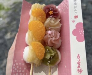 インスタ映え必至!「カラフル団子串」 かわいい見た目でSNSでも話題の和スイーツ。友達同士やカップルにぴったりな一本。