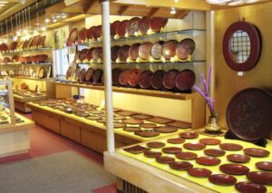 古都鎌倉で代々続く伝統工芸「鎌倉彫」の専門店、鎌倉彫 山水堂。木地に手彫りの装飾を施し、朱や黒の漆で仕上げた小皿や箸、トレーなどの和雑貨は、温かみのある木目と深みのある漆のツヤが魅力です。軽くて実用的なので、お土産やプレゼントにぴったり。使えば使うほどに味わいが増し、日本らしい「和の美しさ」を長く感じられる逸品としておすすめです。