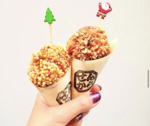 浅草寺すぐそば、仲見世の脇で見つかる「せんから屋」は、”せんべい×唐揚げ”のコラボで話題のテイクアウト専門店。老舗せんべい店の手焼きせんべいを衣に使った唐揚げ「せんから」は、ザクザク衣とジューシーな肉の食感がクセになる。五色あられ衣の「五色せんから」もカラフルで、見た目も可愛いから食べ歩きにぴったり。1個200円前後と手軽で、和装や着物姿にも合う”浅草らしい映え唐揚げ”です。