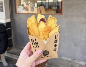 焼き芋専門店「芋やす」は、浅草・花やしき近くにあるサツマイモスイーツ専門店。しっとり甘~い焼き芋だけでなく「焼き芋サンド」「スイートポテト」「おさつチップス」「干し芋シェイク」など、芋スイーツのバリエが豊富で、食べ歩きや手土産にもぴったり。ねっとり食感の「紅はるか」を使った焼き芋は甘さマシマシで、生クリームや芋蜜との組み合わせも映えます。着物で浅草を歩きながら”芋活”するなら、間違いなく押さえておきたいお店です。