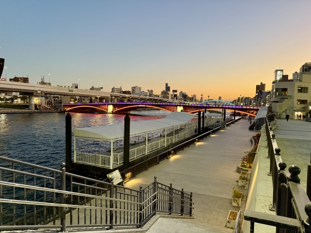 少し足を伸ばせば隅田公園があり、季節ごとに違った雰囲気で撮影できます。秋は特に人気で、落ち着いた色味の着物が映えます。