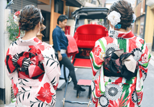 今回は業界最大手の人力車の会社「えびす屋」さんの料金とコースをご紹介します。当店では着物/浴衣プランをご利用のお客様ならオプションで+人力車もご利用頂けます。当店で利用いただけば車夫さんがお店の前まで迎えにきてくれるので、安心してご利用いただけます。