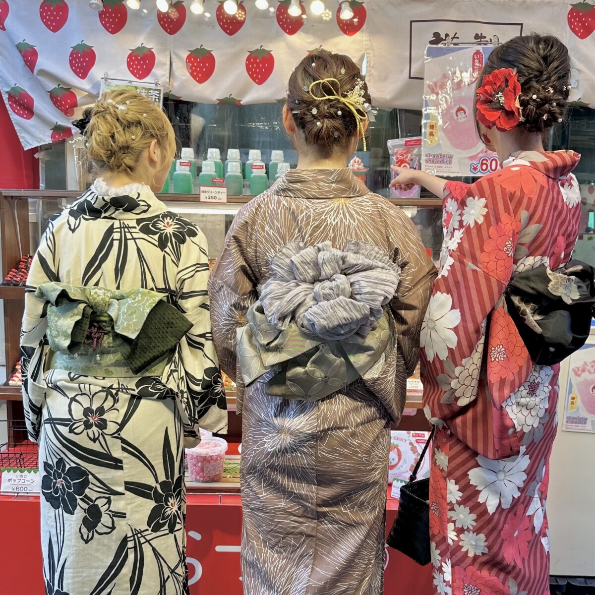 Unlike some rental shops that charge extra for special Kimonos, we offer our entire selection with no additional fees. We have over 500 types of Kimonos, including lace, antique, modern, unique designs, and light pastel colors. You can mix and match with Obi belts to create a stunning outfit that stands out. If you are unsure which combination to choose, please visit our website and Instagram for inspiration!