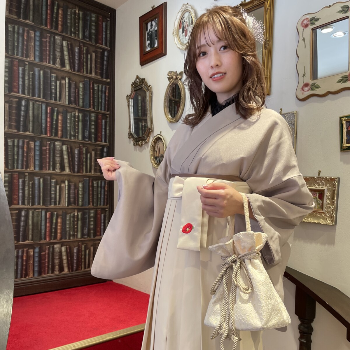 졸업 하카마의 정석은 바로 니샤쿠소데와 하카마의 조합! 저희 매장의 니샤쿠소데는 졸업식과 같은 격식 있는 자리에 잘 어울리는, 귀엽고 세련된 디자인이 풍부합니다. 인기 있는 레트로 모던풍부터 사랑스러운 걸리시 스타일까지 다양하게 갖추고 있어, 자신에게 잘 어울리는 하카마 코디를 연출하실 수 있습니다. 또한, 보다 화려하고 고급스러운 분위기를 원하는 분들께는 후리소데와 하카마의 조합도 졸업식이라는 특별한 날에 안성맞춤입니다.