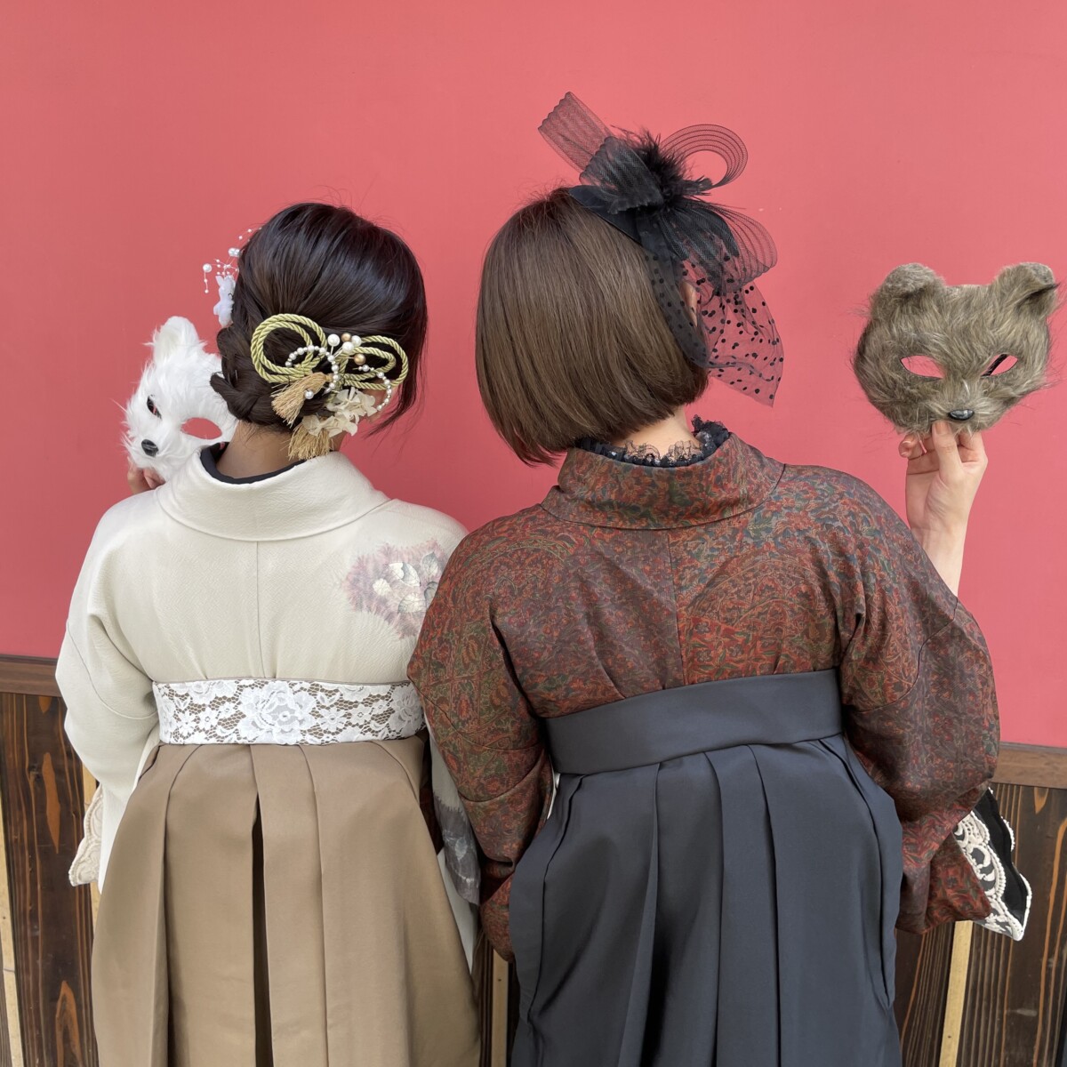 저희 매장에서는 하카마에 매치할 기모노로 니샤쿠소데와 후리소데를 준비하고 있습니다. 「니샤쿠소데 + 하카마」, 「후리소데 + 하카마」 조합은 졸업식 등 격식 있는 행사에 최적화된 포멀 스타일로, 전통적인 레트로 무늬부터 걸리시하고 여성스러운 디자인까지 다양하게 준비되어 있습니다. 특히 「니샤쿠소데 + 하카마」는 졸업식 고객님들 사이에서 가장 인기 있는 조합입니다. 자신에게 어울리는 하카마 코디를 찾아보세요!