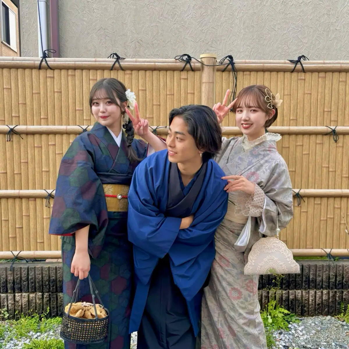 大人と同じ着物になりますので小学生の場合、身長によってお受けできない場合があります。男性の場合155㎝~、女性の場合145㎝~。小柄な学生様の場合、着付けが出来ないわけではありませんが、丈や袖が長くなることが予想されます。実際小学生の修学旅行でもご利用頂いております。