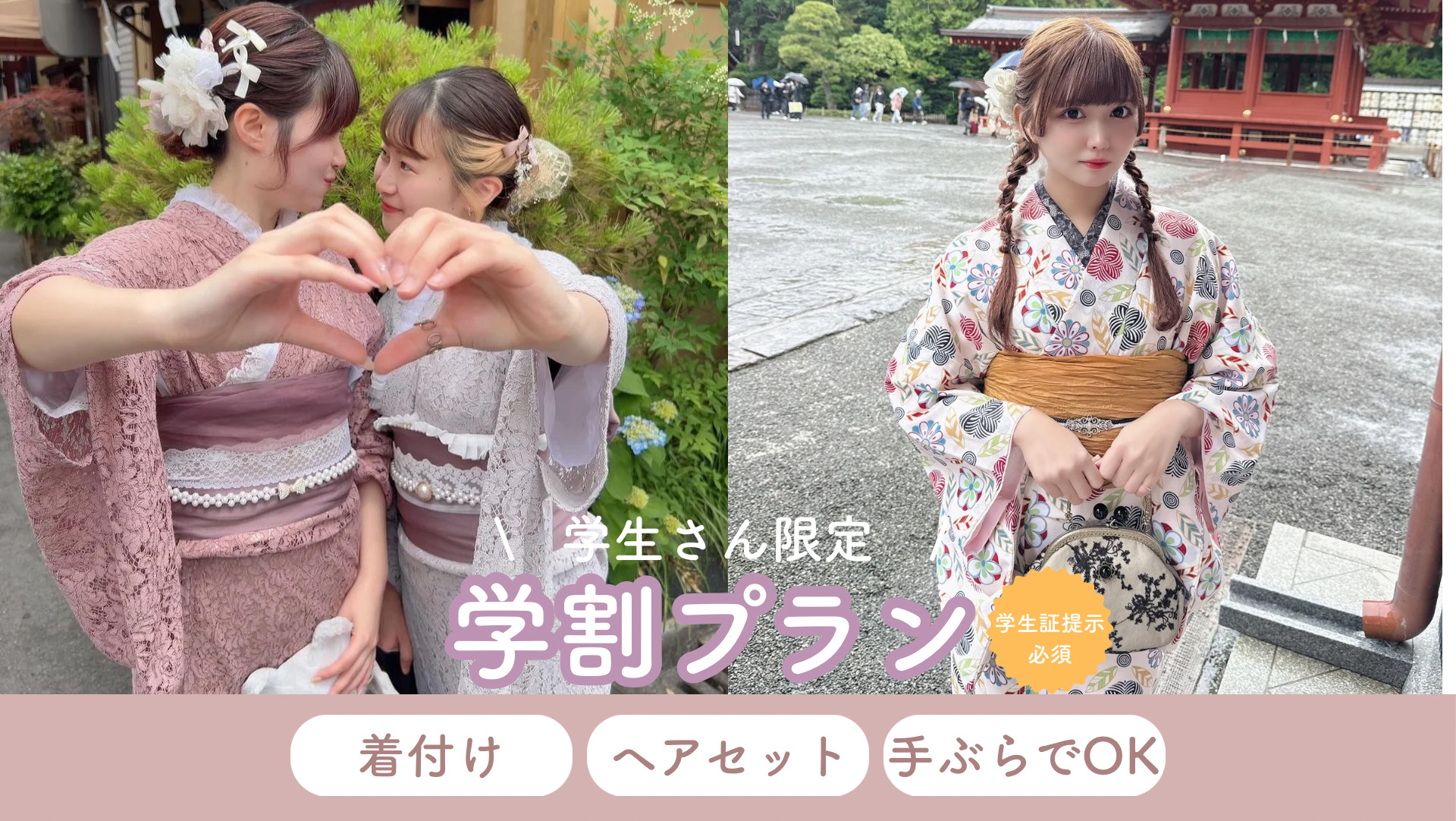 - 鎌倉着物レンタル 学割ヘアセット込みプラン