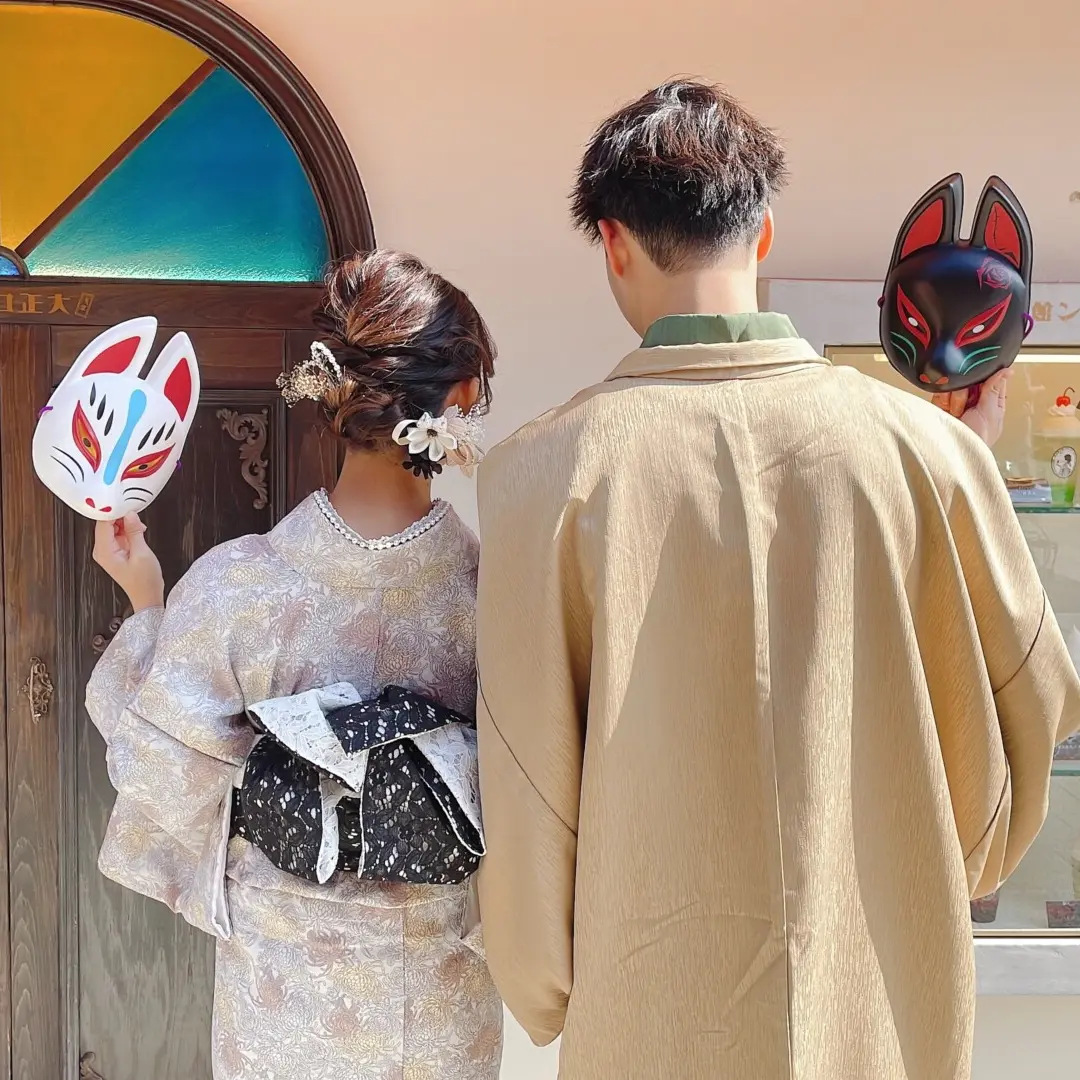男女2名様分の着物レンタル一式に女性のお客様のみ髪飾り&ヘアセット付、手荷物のお預かりもついて必要なものが全部揃ったお得な着物プランです。女性用着物は500種類以上、人気のレース着物はもちろんシンプル系から定番のレトロモダンまで種類豊富に取り揃えています。合わせる帯の種類も100種類以上あるから、コーデの幅も無限大。SNSで話題の旬なトレンドアイテムを合わせれば、着物レンタルをより一層お楽しみいただけます。当店の男性着物のテーマは「お洒落にかっこよく」定番のシックでシンプルなものから少し個性的でオリジナリティの強い着物まで多種多様。カップル割で通常プランより1,000円以上お安くなる着物カップルプランなら鎌倉着物デートをお得に賢く実現できます。