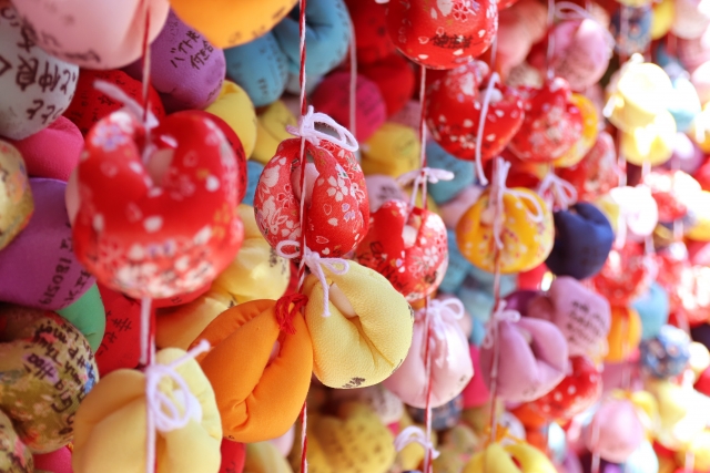 SNS映えすると有名なのがこちらの八坂庚申堂。祇園で着物レンタルする方の多くがこのカラフルなくくり猿を背景に写真を撮っていかれます。くくり猿に願い事を書いて吊るしていくのですが、大変人気のようで夕方までに「くくり猿」が売り切れてしまうこともあるそうです。限定品で1日の販売数も決まっているようなので、お求めの際はお早めに行かれることをおすすめします。祇園の着物散策には欠かせない場所なので是非行かれてみてはいかがでしょうか。
