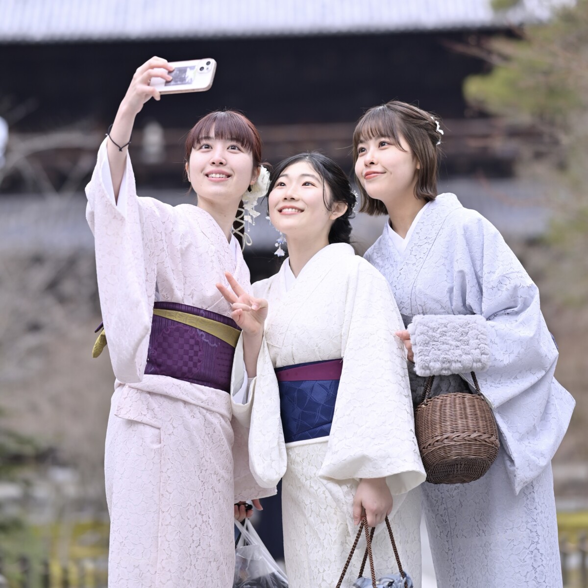 修学旅行プランでもヘアセットは別料金になっている…という着物レンタル店も少なくありません。予算が決められていることも多い中学生や高校生の修学旅行生の方にも楽しい京都を満喫していただくために、ヘアセット込みのリーズナブルな価格でご用意しております。ヘアセットはヘアカタログの中からお選びいただくことができ、ゆるふわ編み込みツインや定番のアップヘア、大人っぽい印象のストレートポニーテールなど、プロのスタイリストが着物に合うトレンドのヘアセットを施させていただきます。そして髪飾りは無料で何個でも付け放題。スタッフハンドメイドのドライフラワーや、パール、定番のかんざし、おしゃれで可愛いヘッドドレスなど、豊富な種類を取り揃えていますので、ヘアセットにもこだわりたい!という中高生におすすめです。