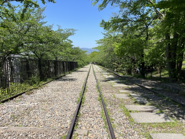 雖然距離祇園四条站稍有一段距離,但從和樂出發搭計程車約10分鐘即可抵達蹴上傾斜鐵道,是每年春天京都賞櫻的人氣景點之一。這條位於南禪寺附近的舊鐵道遺跡,每到春櫻盛開的季節,總會吸引無數攝影愛好者與穿著浴衣的旅人前來朝聖。鐵道兩側綿延的櫻花隧道,搭配復古氛圍濃厚的鐵軌景致,瀰漫著大正浪漫的懷舊氣息,與現代復古風的浴衣特別相襯。非常推薦學生朋友穿著浴衣來此散步、拍照,為京都旅程留下一段值得珍藏的回憶。